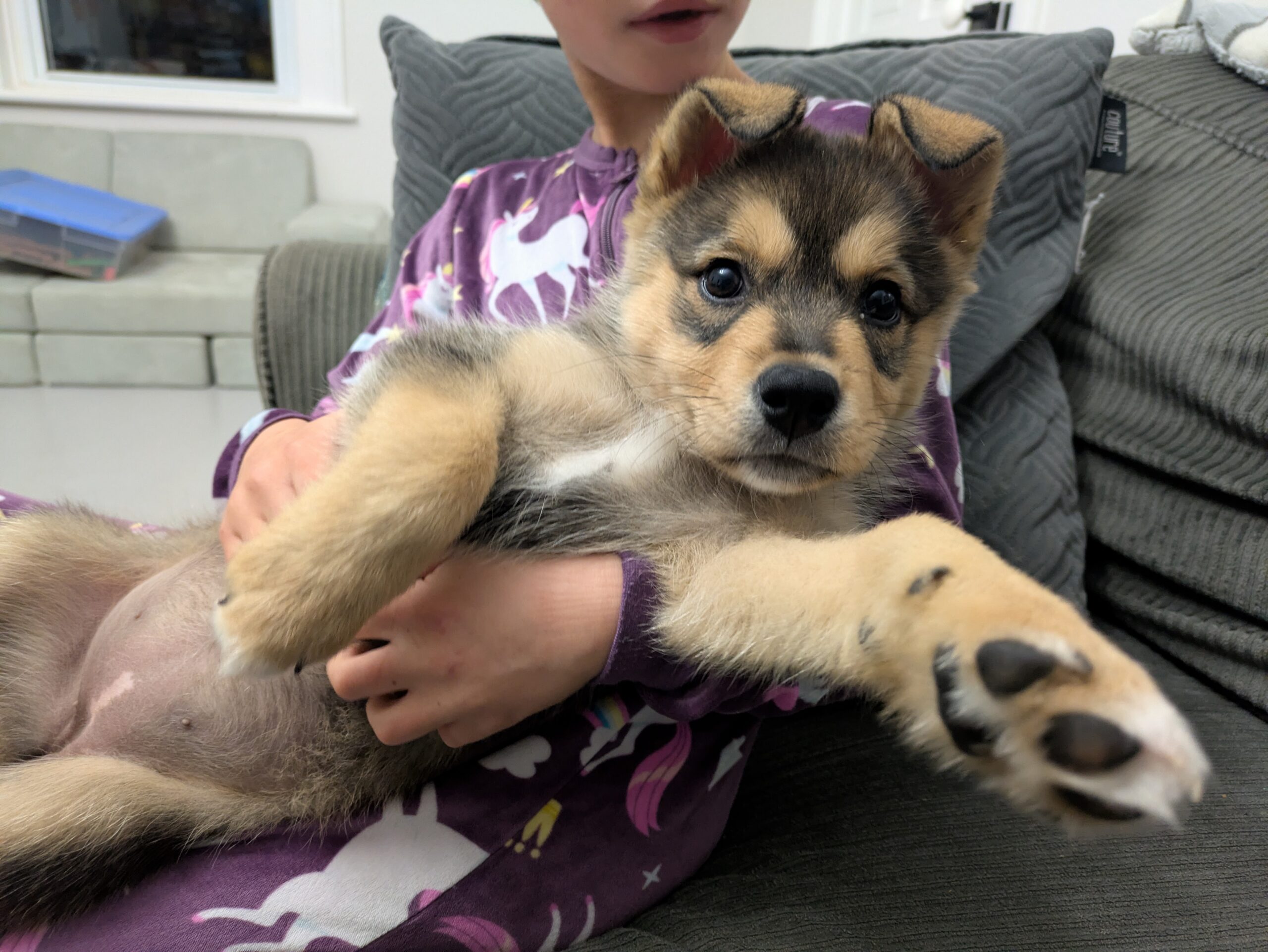 Meet Pumpkin, a 3 month old husky mix. Pumpkin is a playful, curious little explorer who’s full of love and ready for her forever home! She adores people and quickly wins hearts with her happy energy and treat-motivated enthusiasm. Pumpkin lives with kids and does wonderfully with them—she’s gentle, social, and always up for fun.
