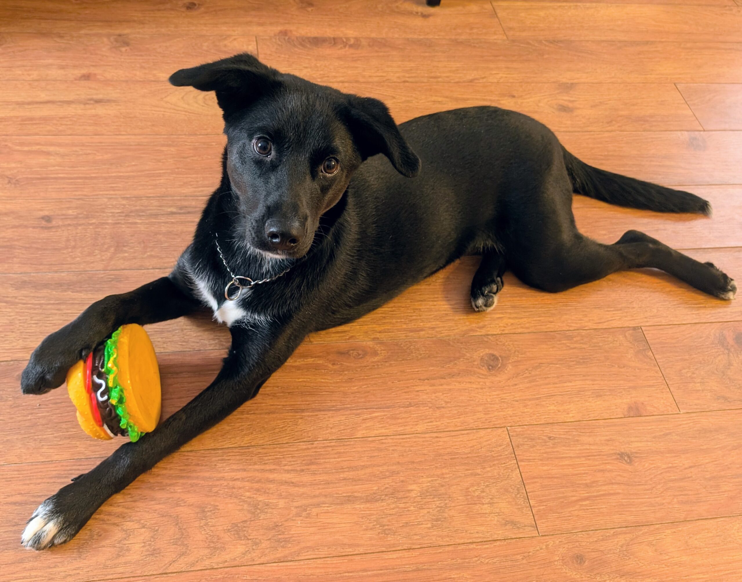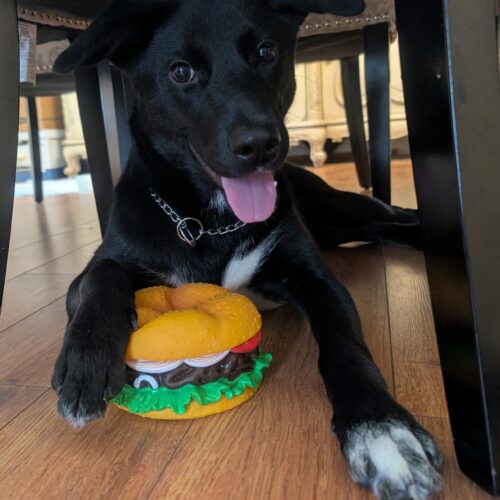 She’s that perfect mix of playful and tender — loving fetch, squeaky toys, and time with her people and doggy friends. She enjoys the backyard and would love a quiet home in the suburbs or countryside where she can explore without city noise.