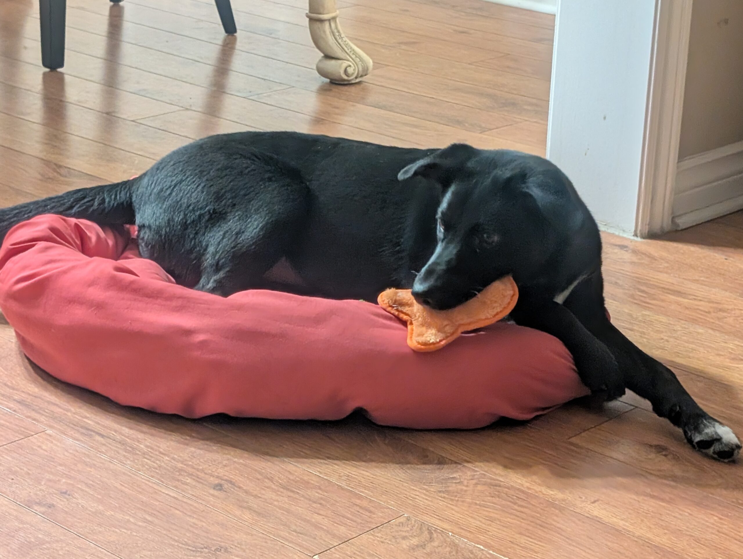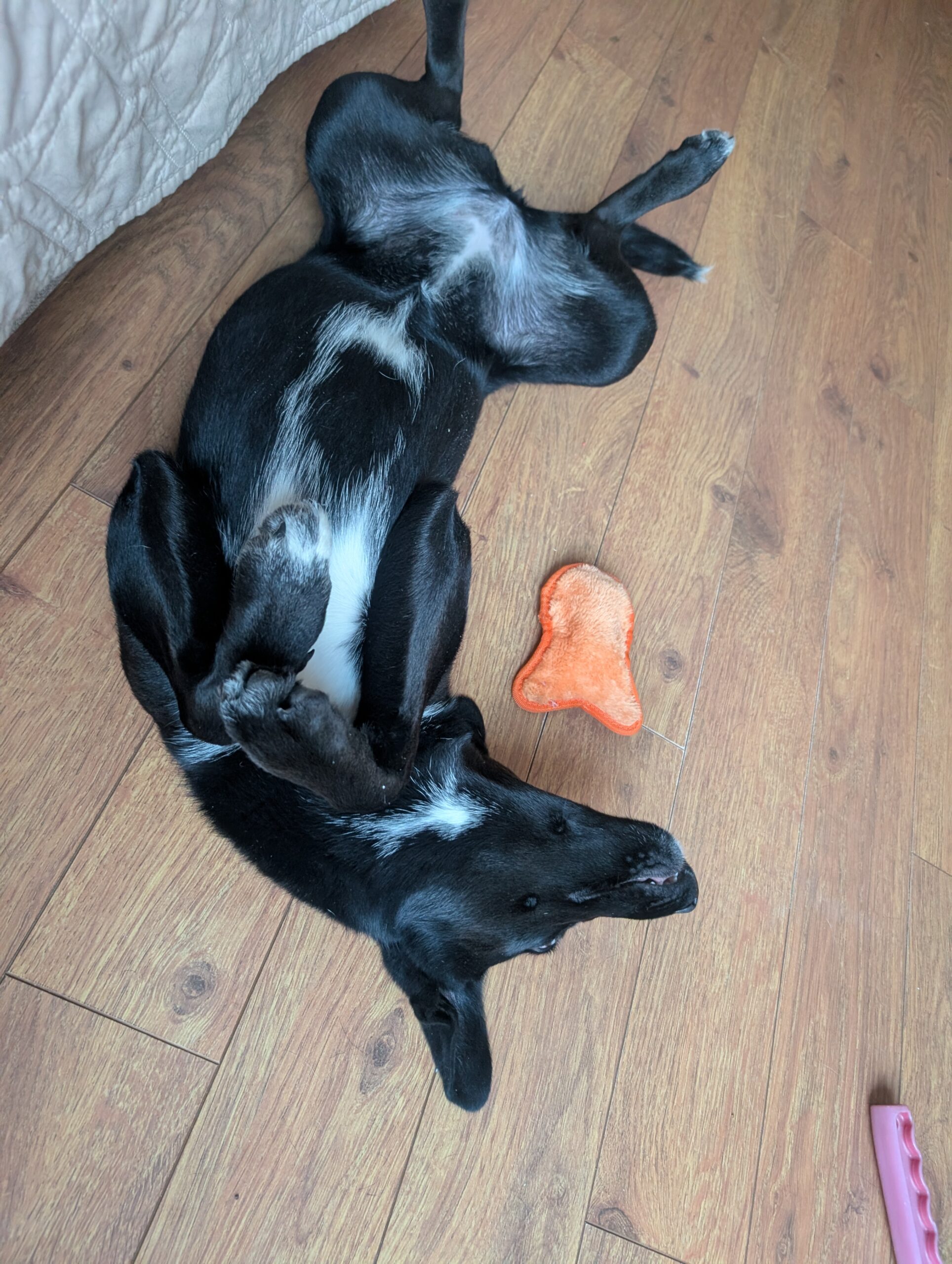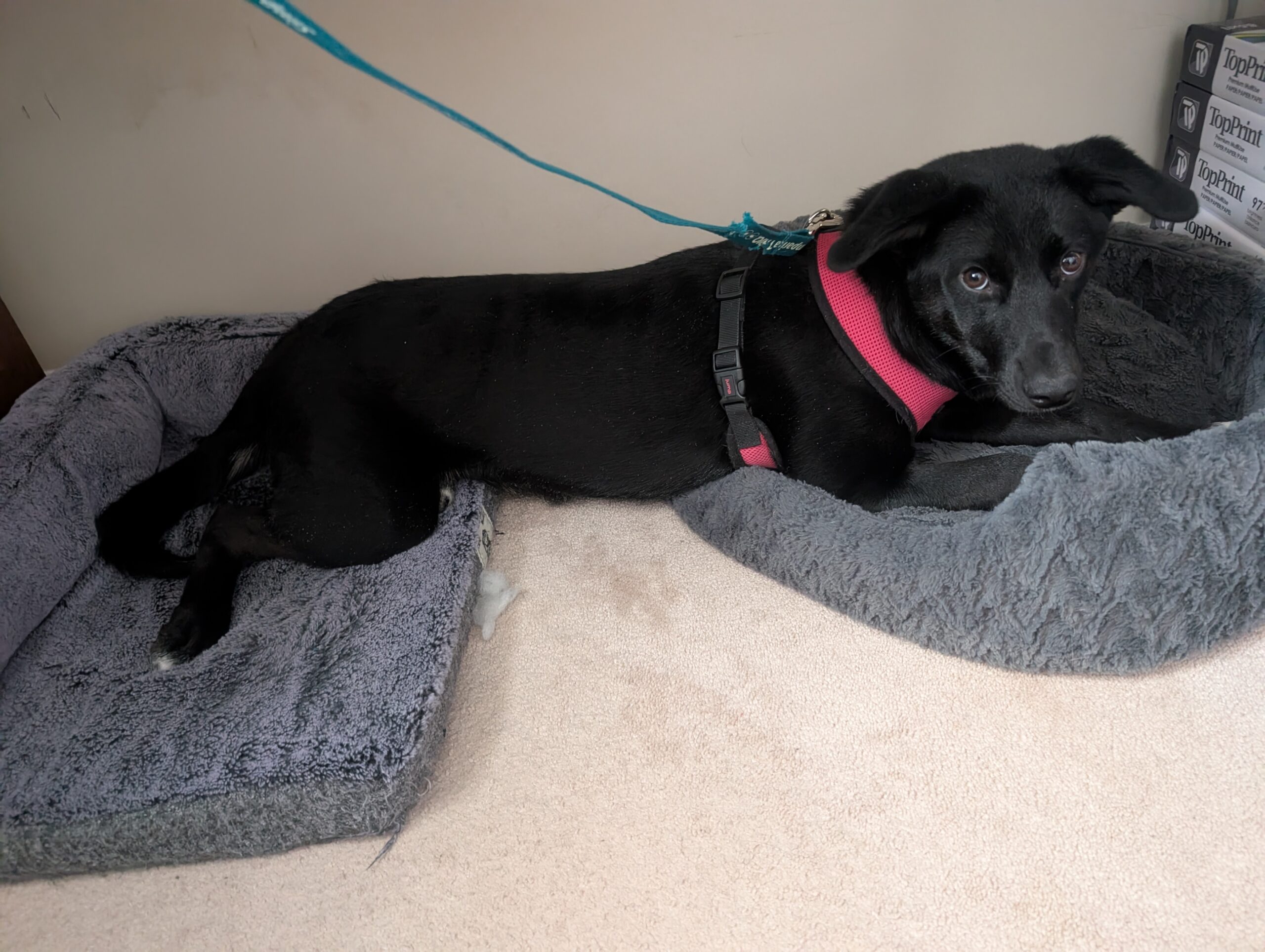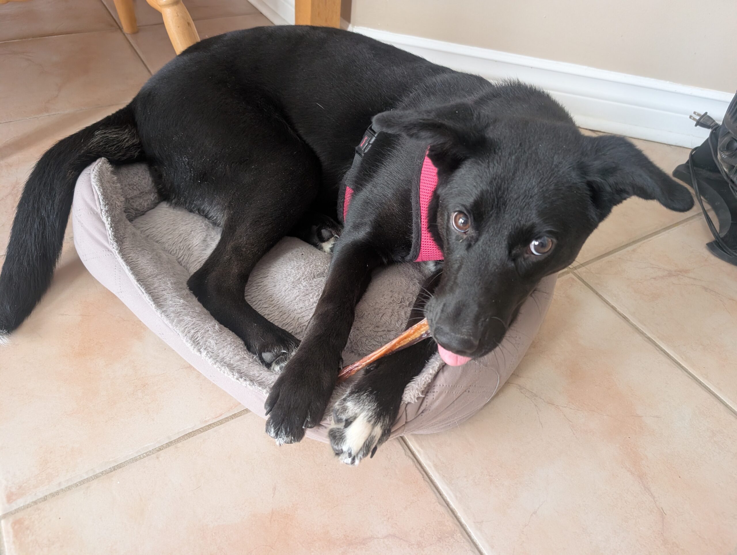Flower is a happy, affectionate girl who plays hard, naps soundly, and has quickly earned the title of best overnight sleeper in her foster home. She may need a little gentle encouragement to get into her crate, but once she’s in, she settles quietly and sleeps through the night.