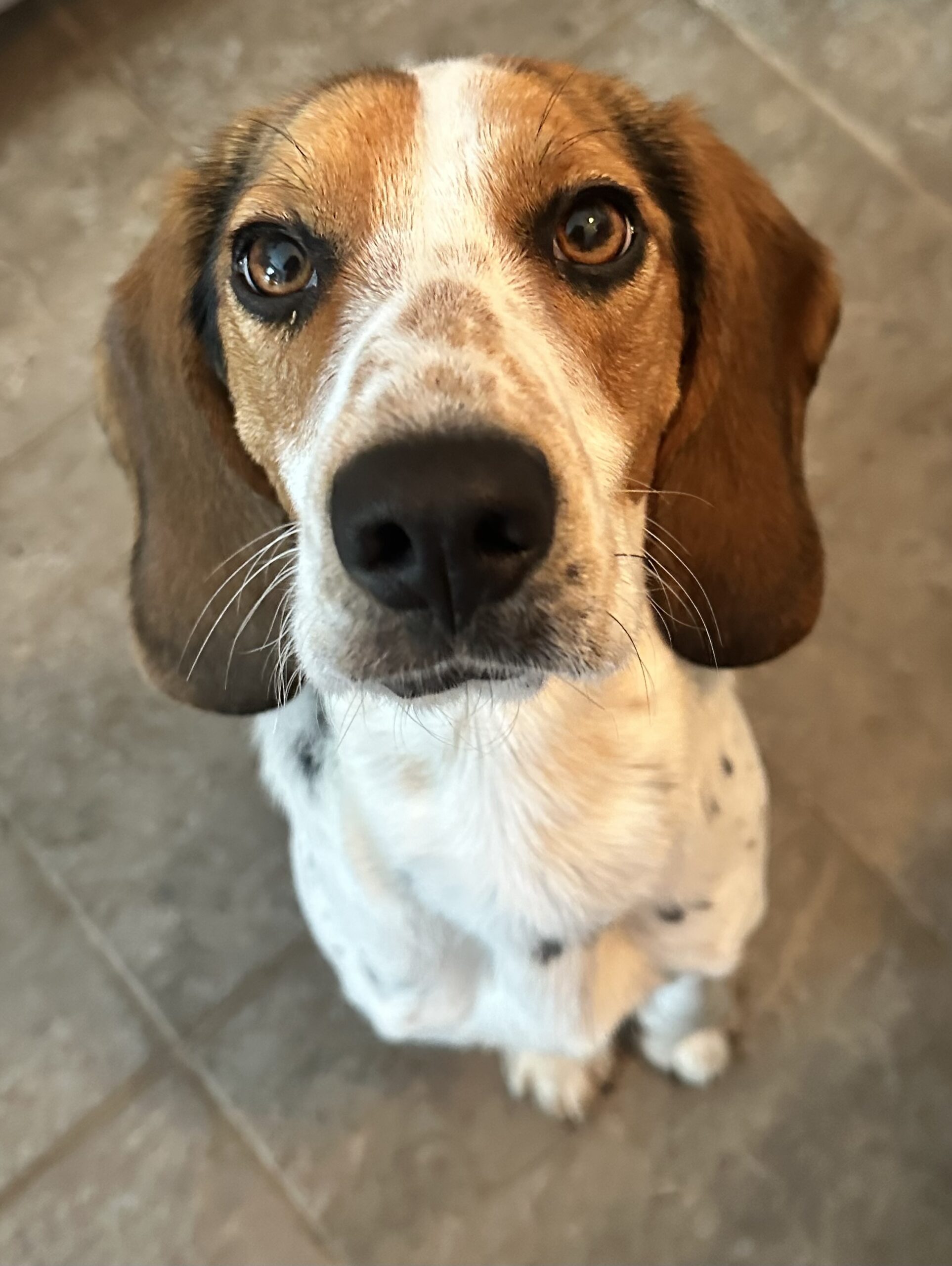 Looking for love? So is Belle — a three-year-old tricolour Treeing Walker Coonhound beauty, weighing in at a dainty 26 lbs and ready to steal hearts. Originally from Moosonee, Ontario, this petite explorer has traded her northern adventures for cozy naps and cuddly nights with her foster family’s kids (she loves sharing a bed!).