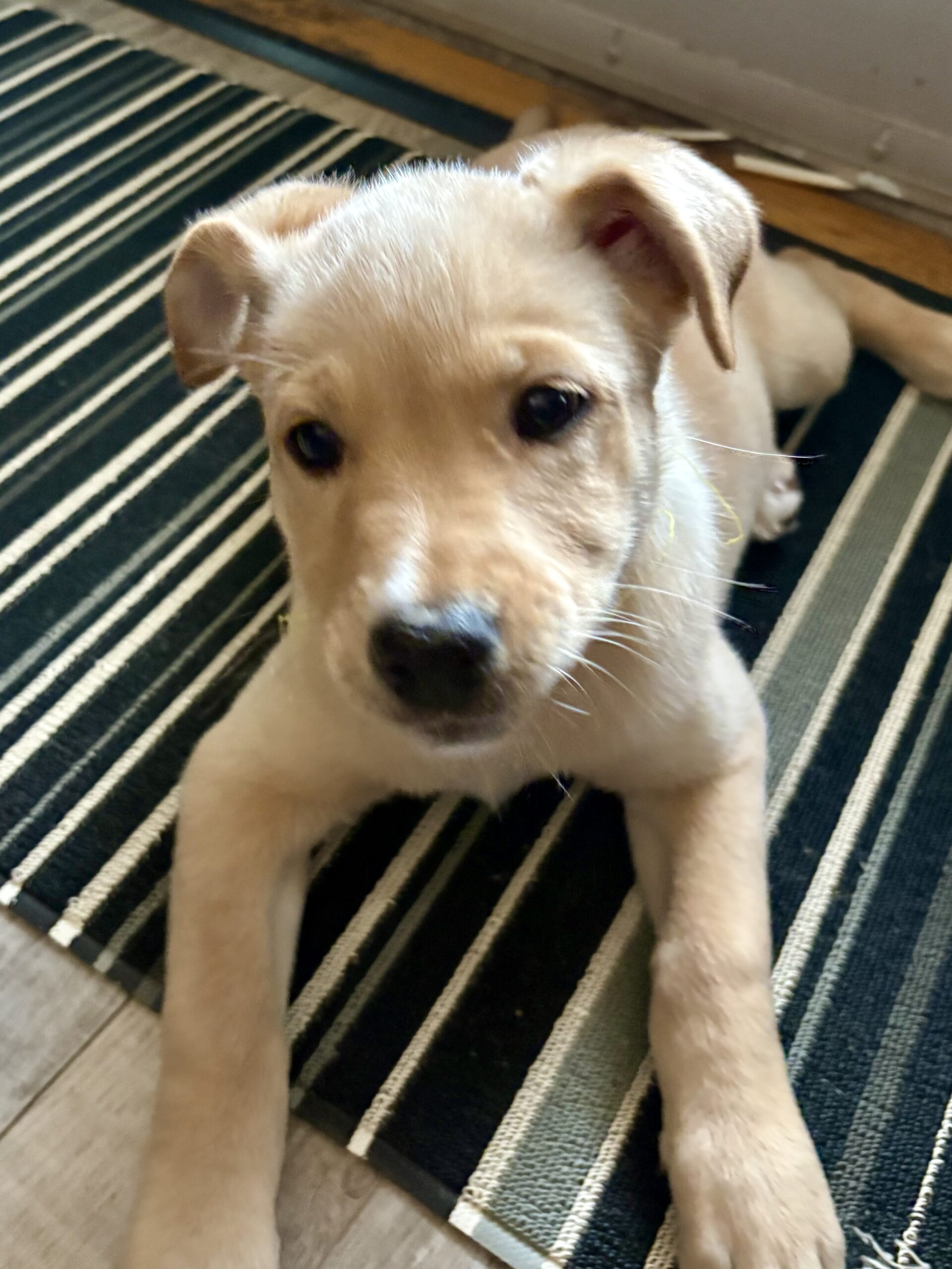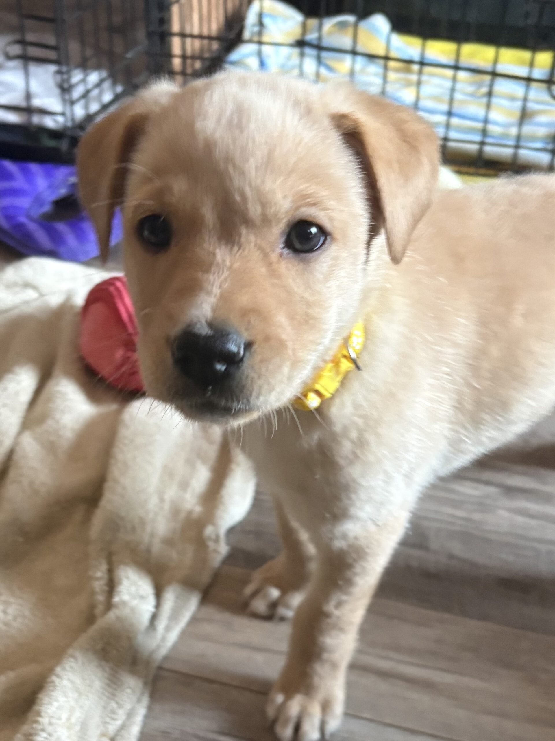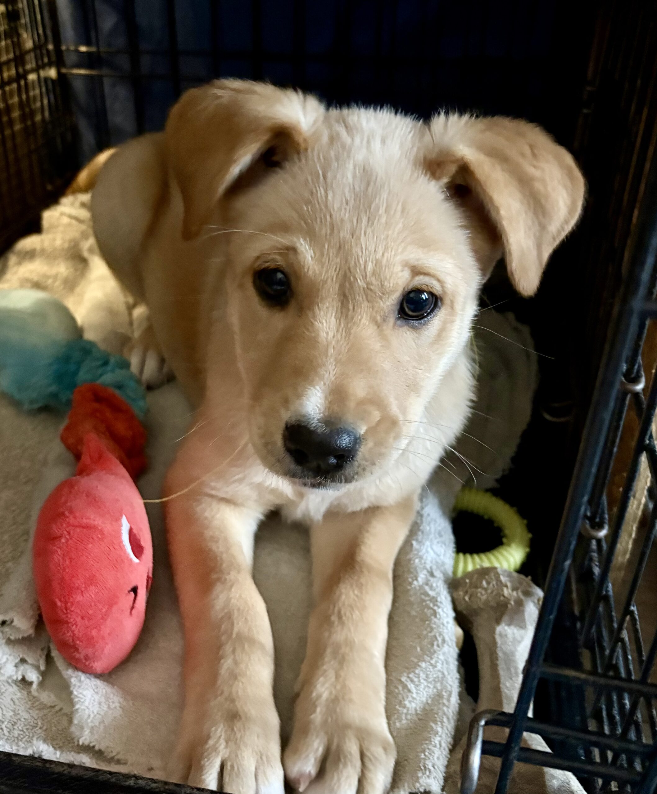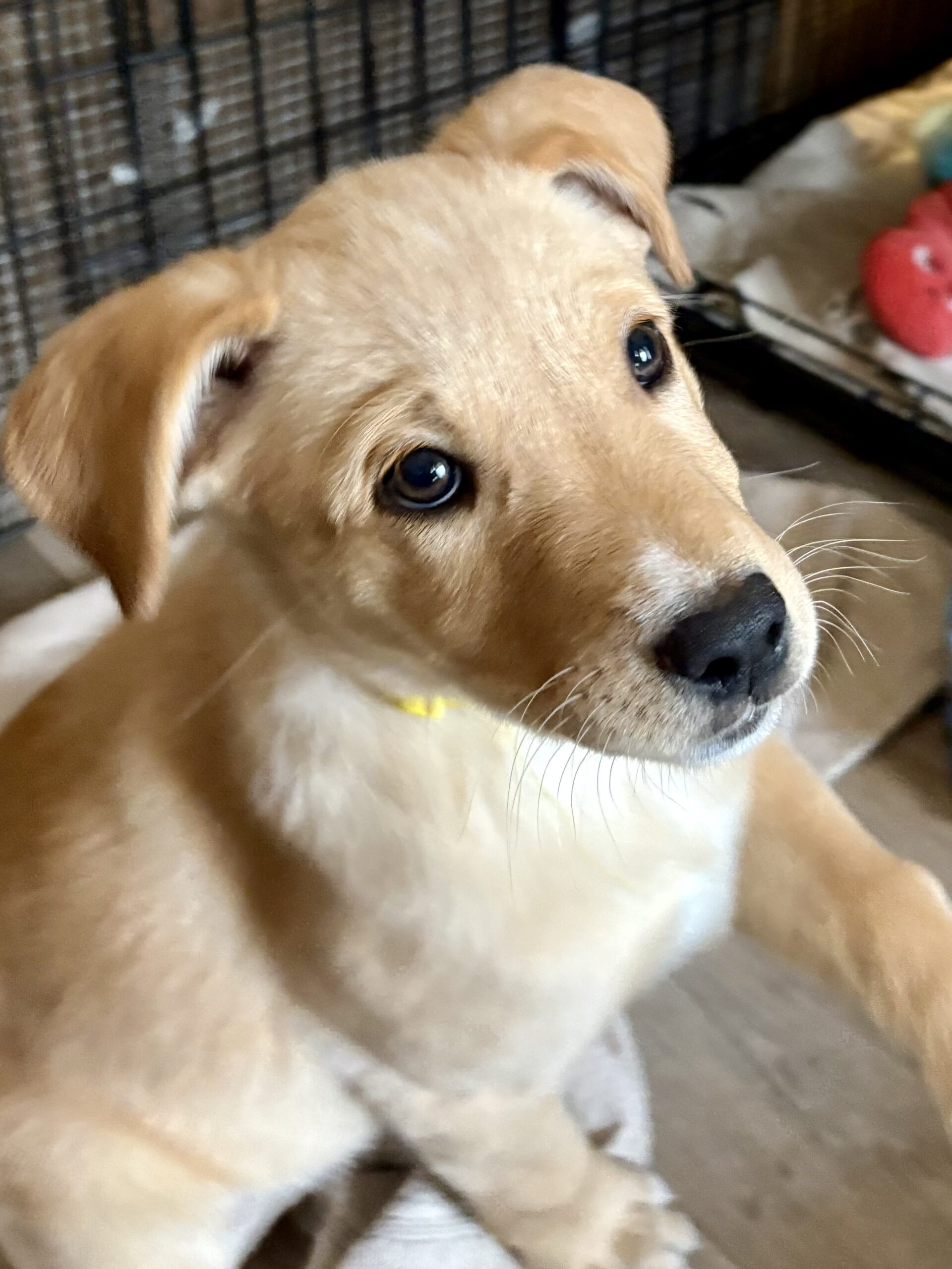 Out in the world, Vixen is cautious but not fearful, taking in new sights and sounds with a thoughtful little nose and wagging tail. She already enjoys car rides, so adventures and roadtrips -- check! She’ll need an adopter who understands there will be an adjustment period as she settles into her new home and routine, especially coming from a setup where pups are crated separately but close together. In return, Vixen promises endless play, warm snuggles, and a touch of Santa’s reindeer magic to brighten every season.
