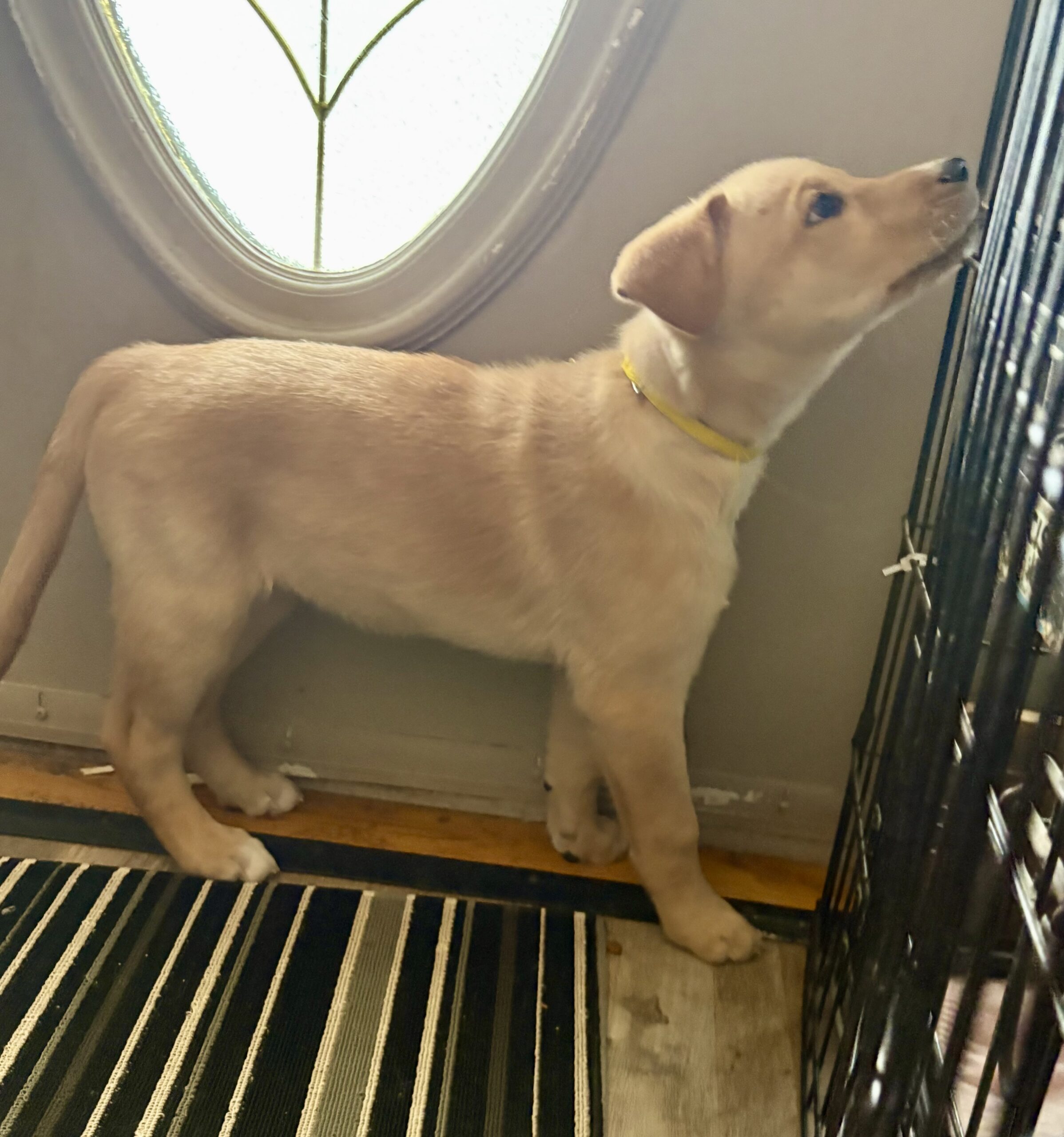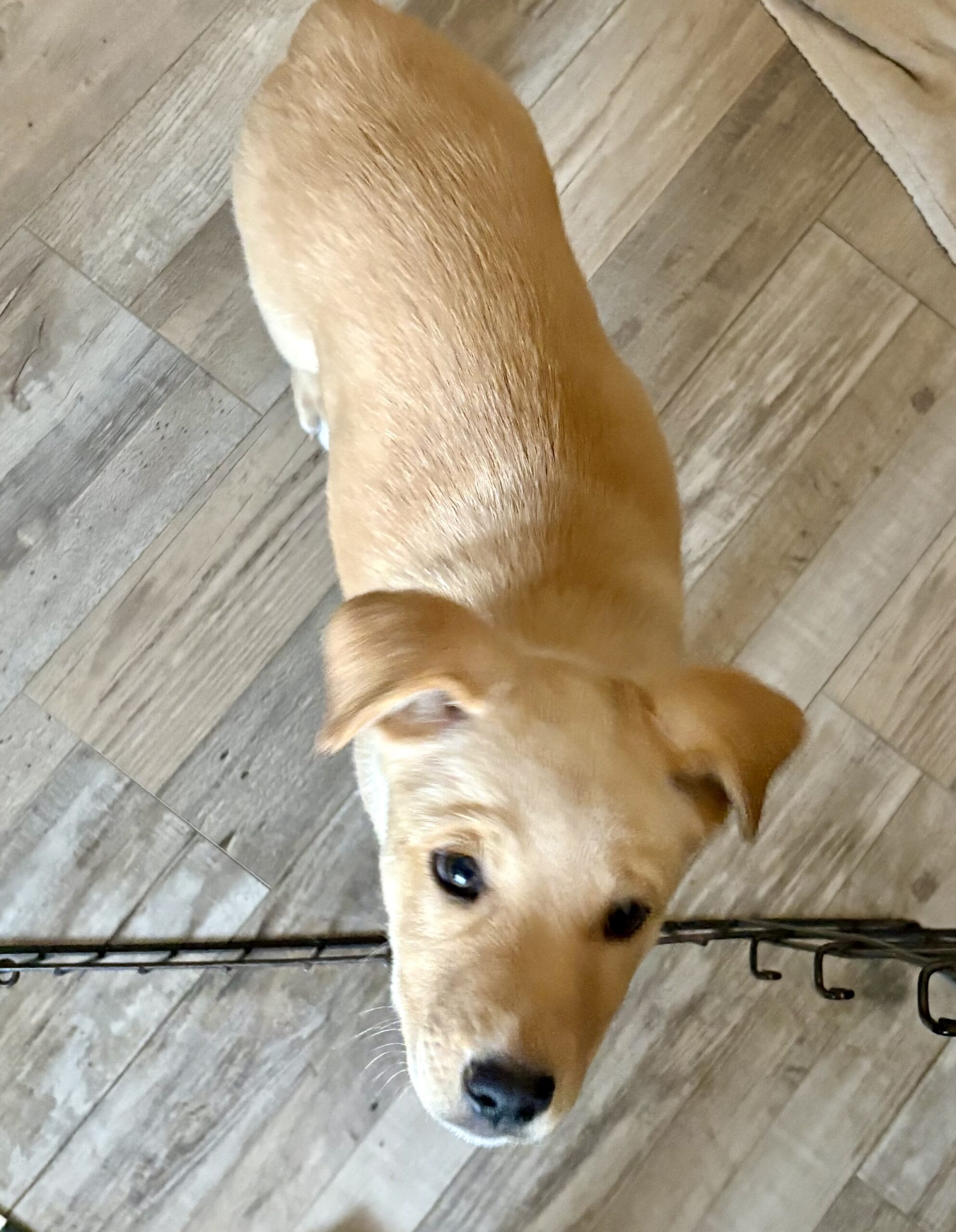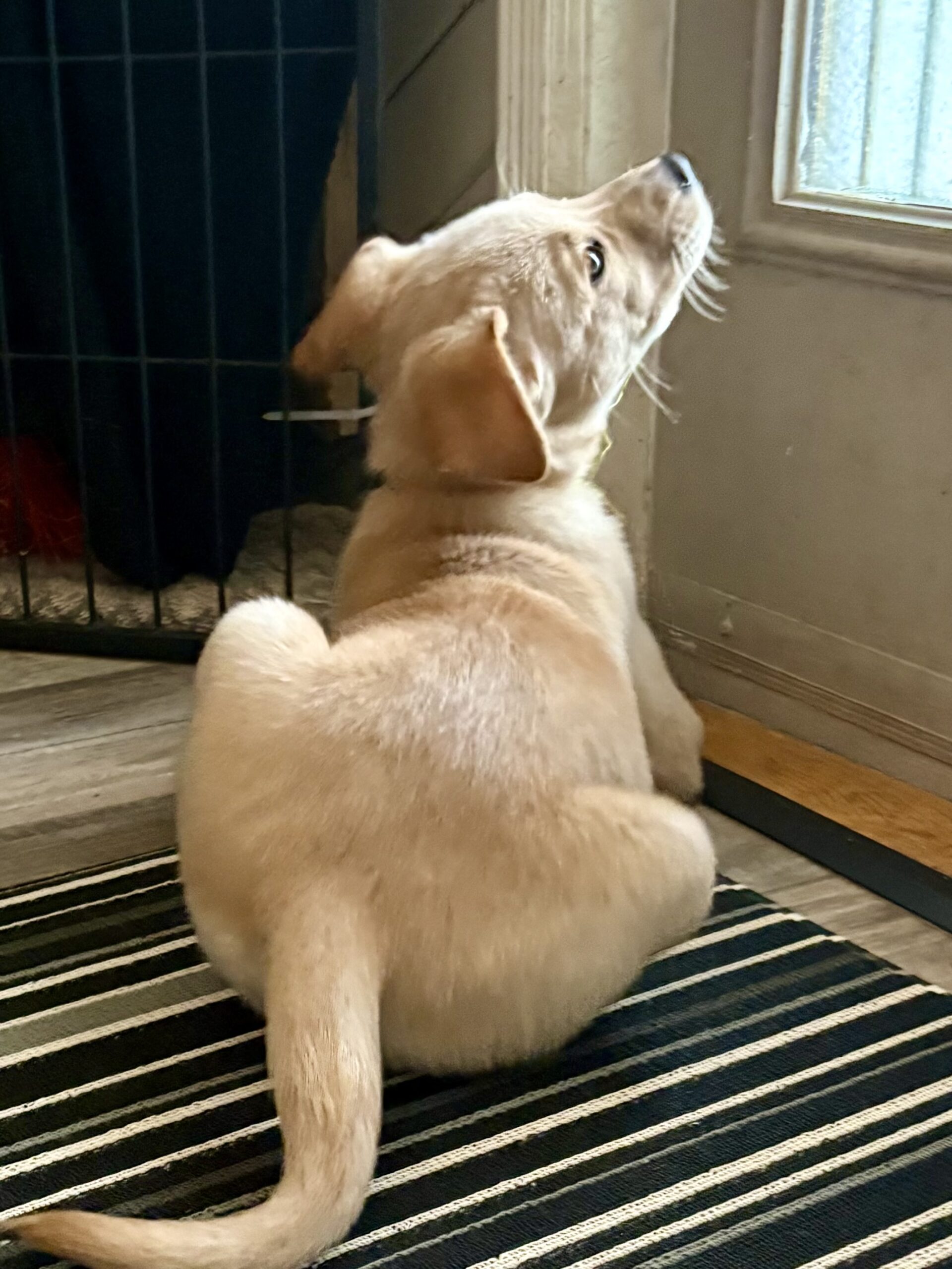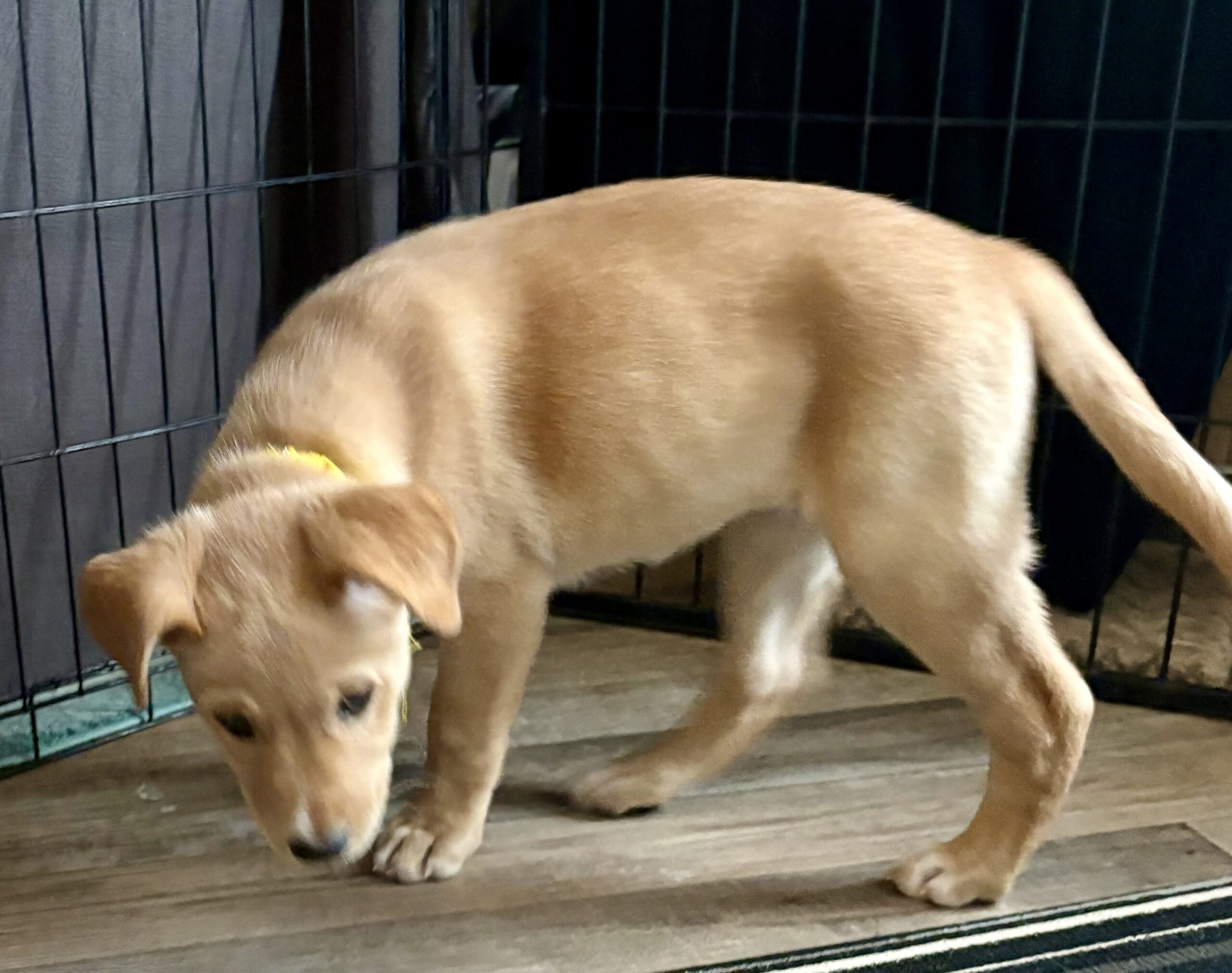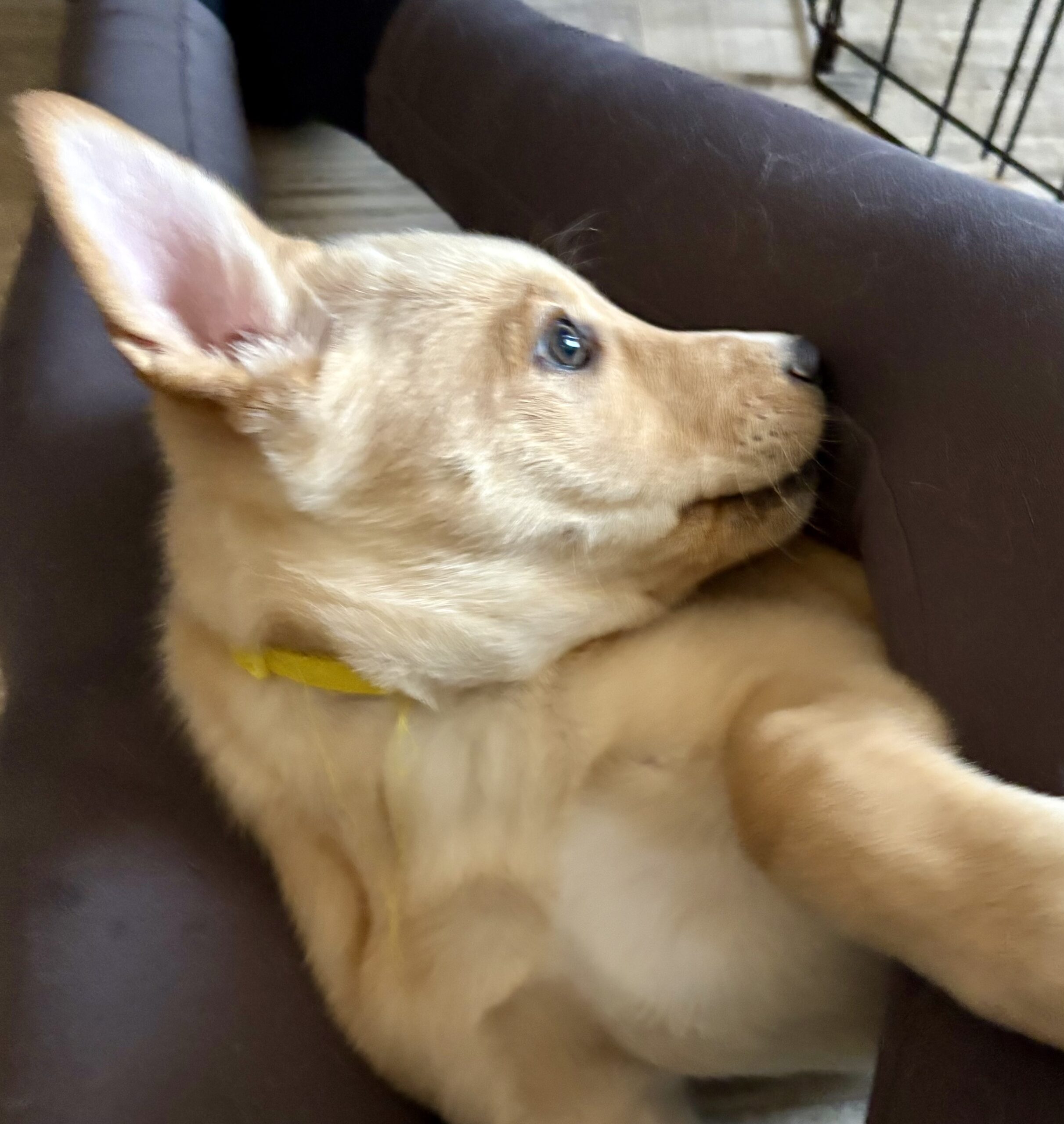 At home, Vixen’s cozy side really shines. She currently naps and sleeps in a covered crate with a blanket, and while she may whine a little when first tucked in, she settles quickly and sleeps for about six to seven hours overnight, with only an occasional pee accident. She’s not the biggest fan of water, but she handles baths like a champ when needed.