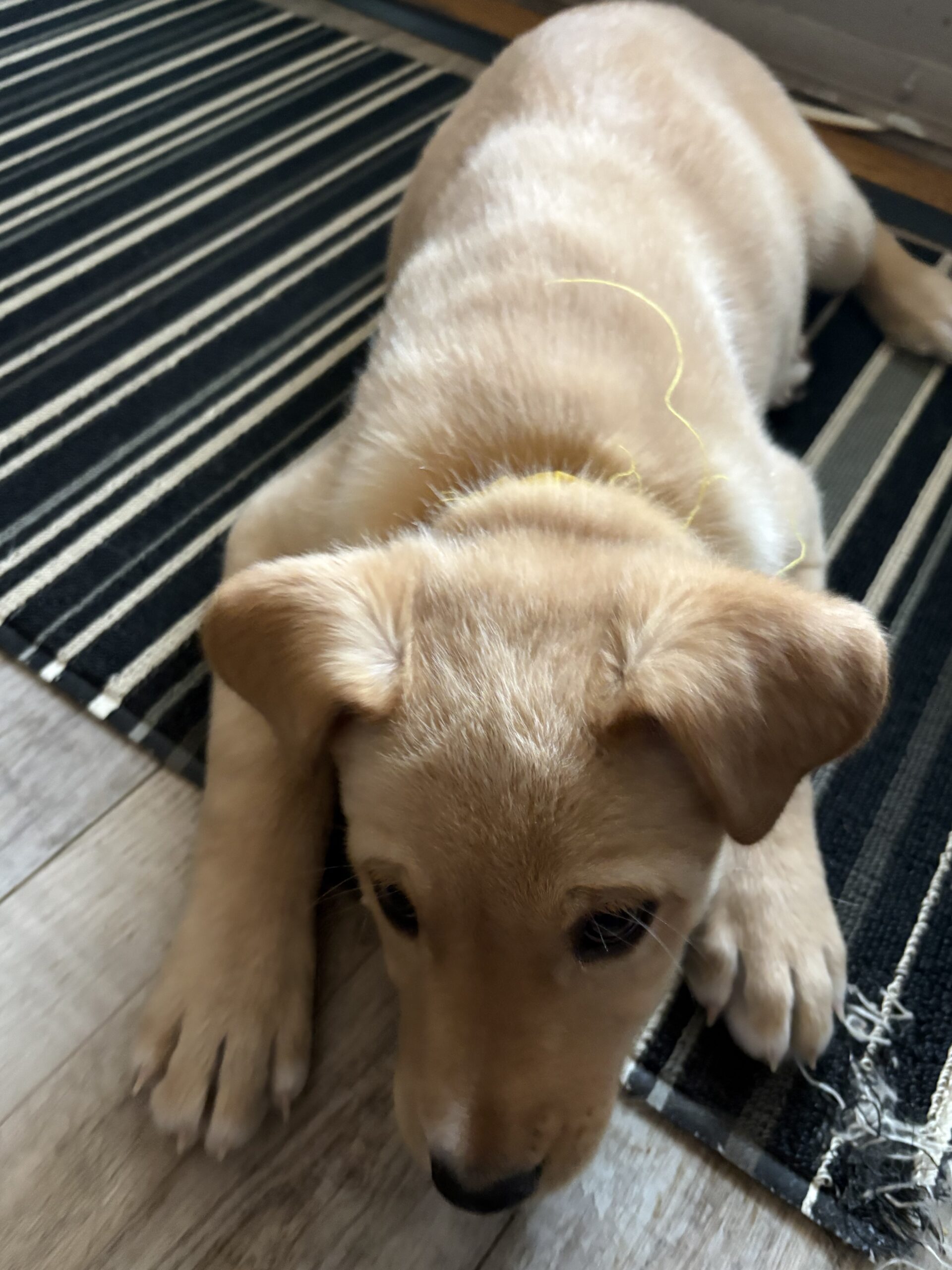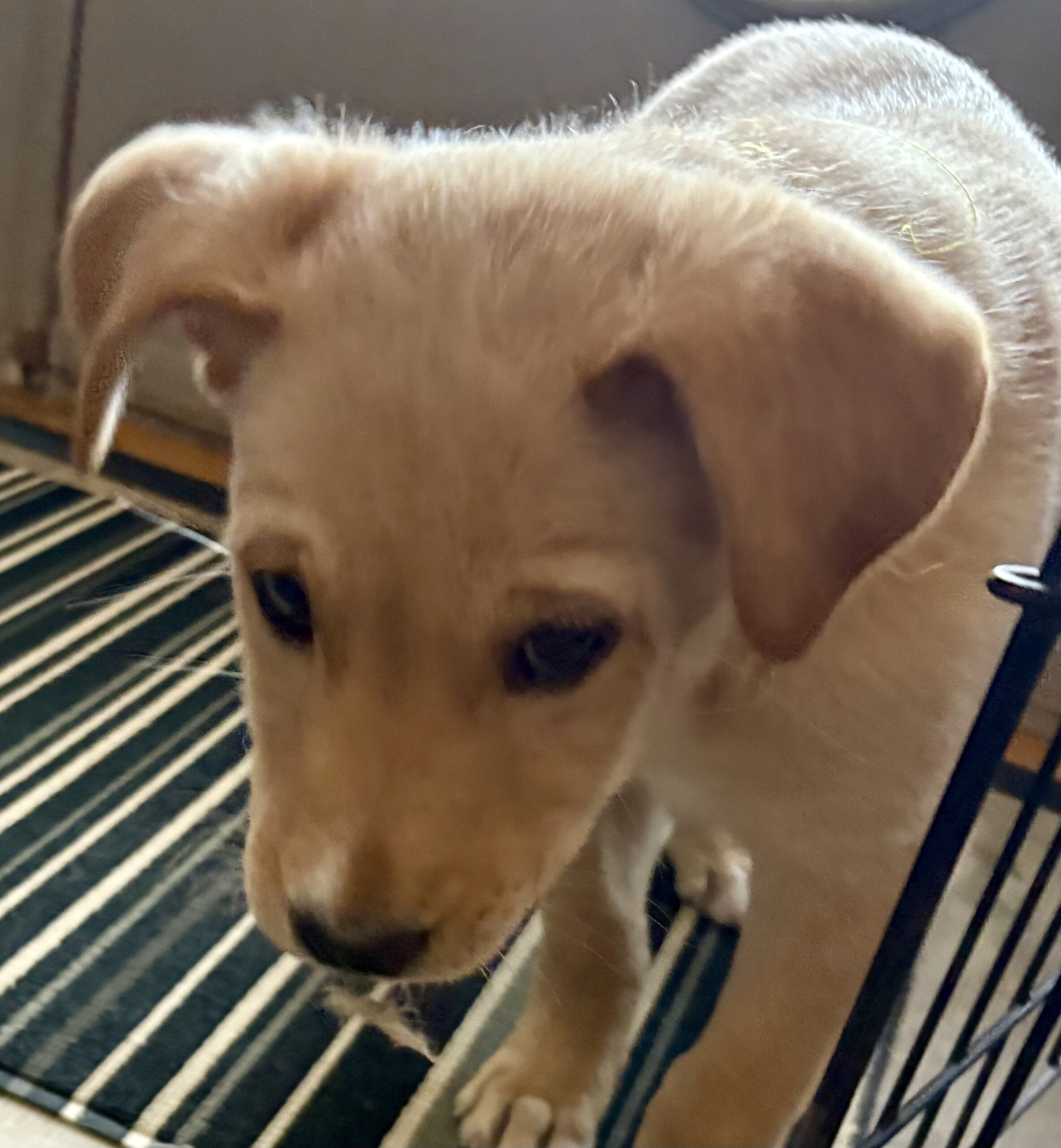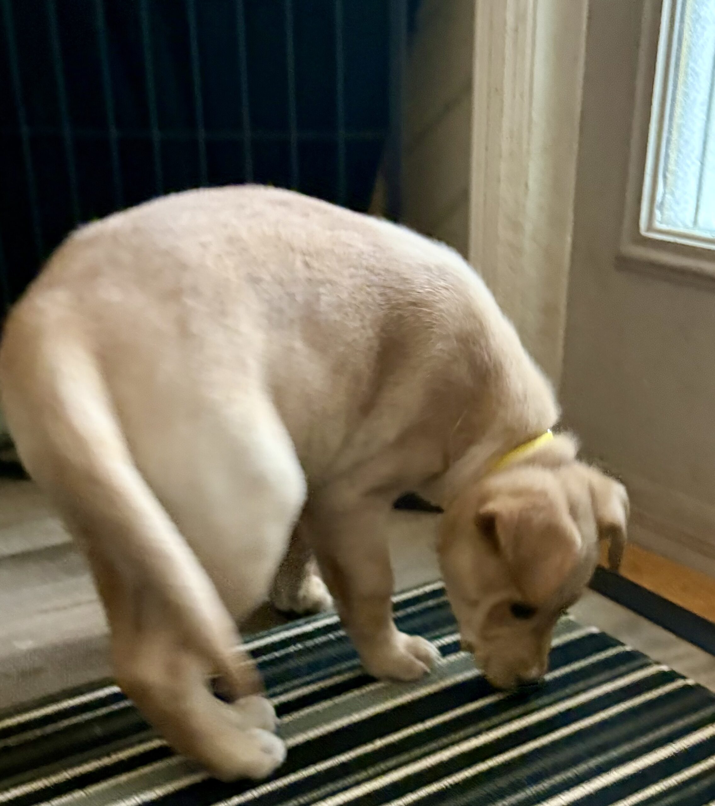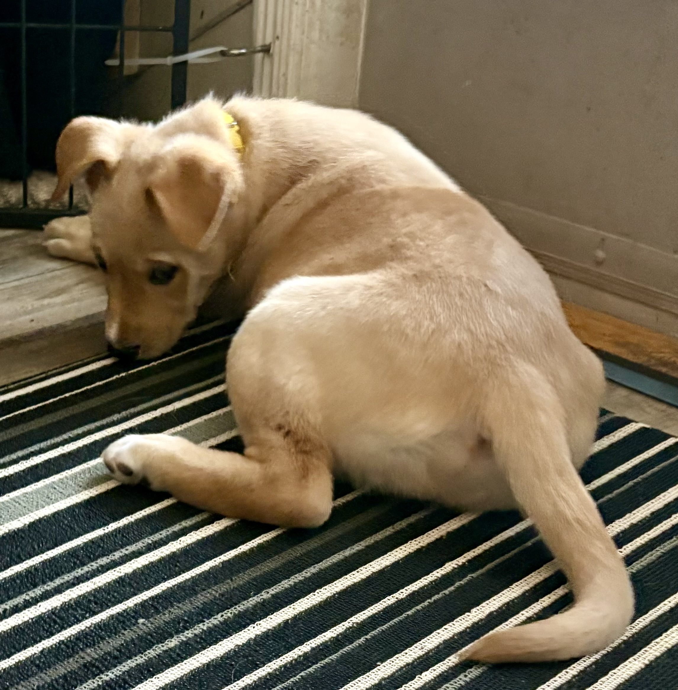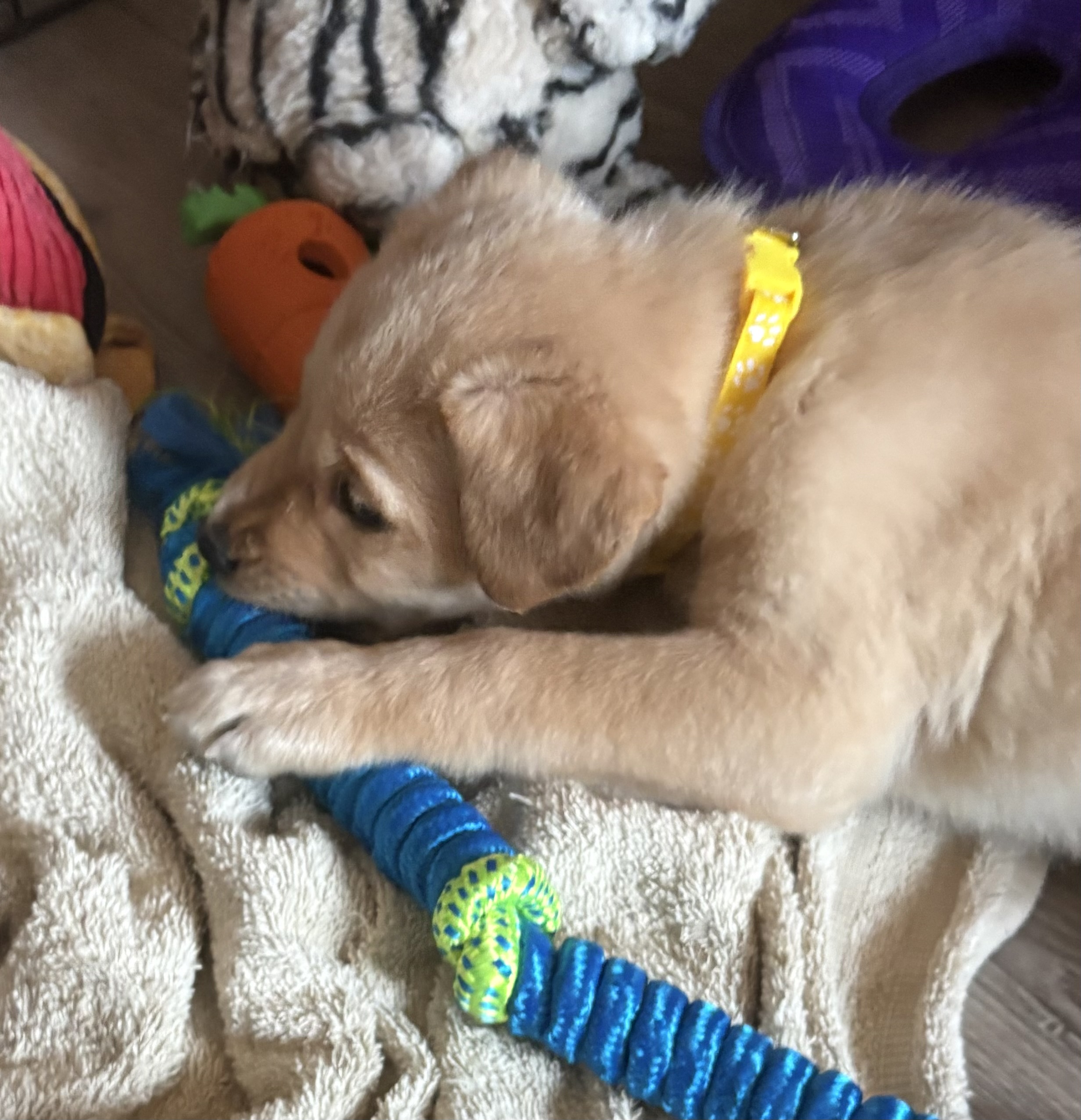 At home, Vixen’s cozy side really shines. She currently naps and sleeps in a covered crate with a blanket, and while she may whine a little when first tucked in, she settles quickly and sleeps for about six to seven hours overnight, with only an occasional pee accident. She’s not the biggest fan of water, but she handles baths like a champ when needed.