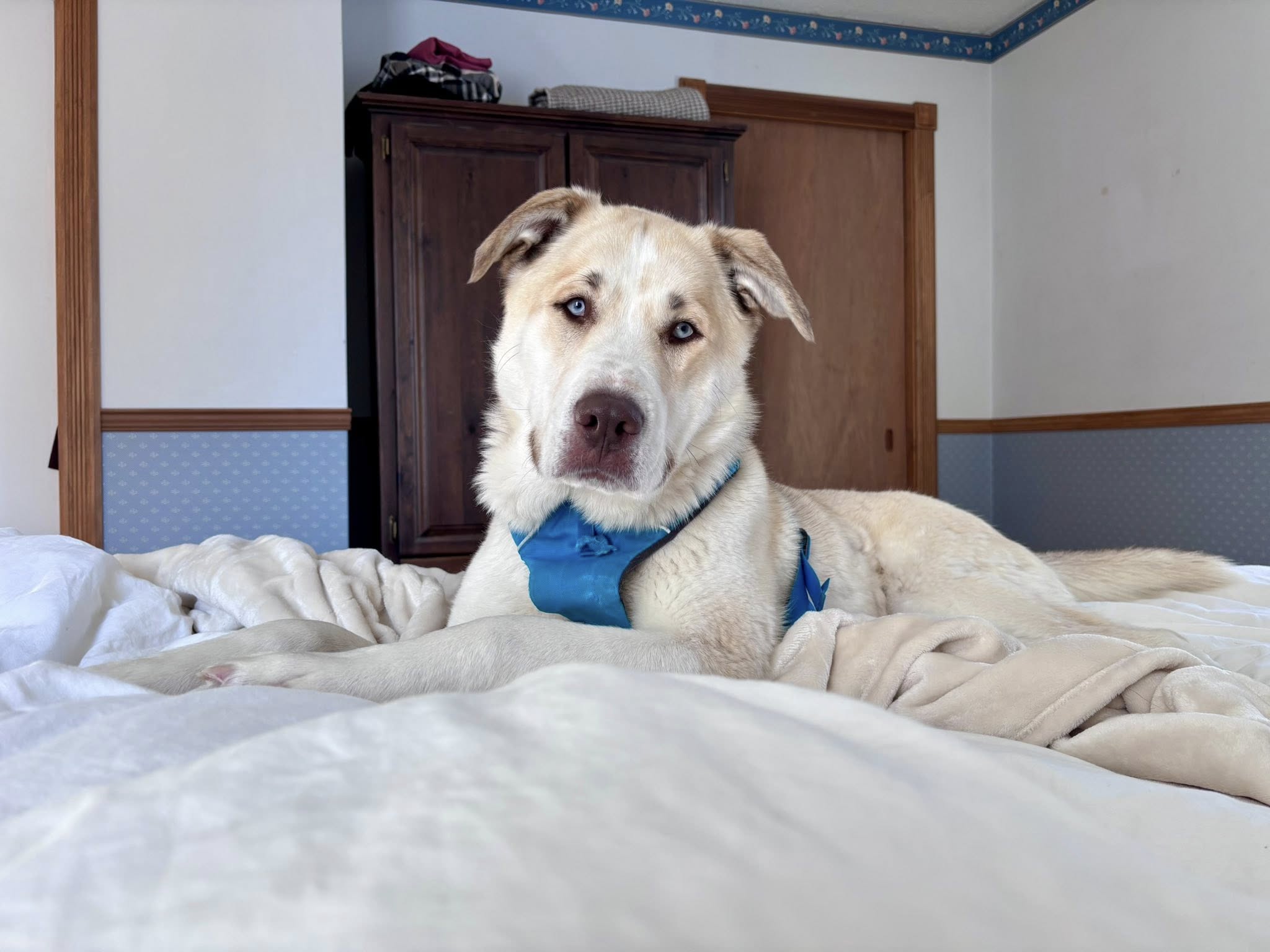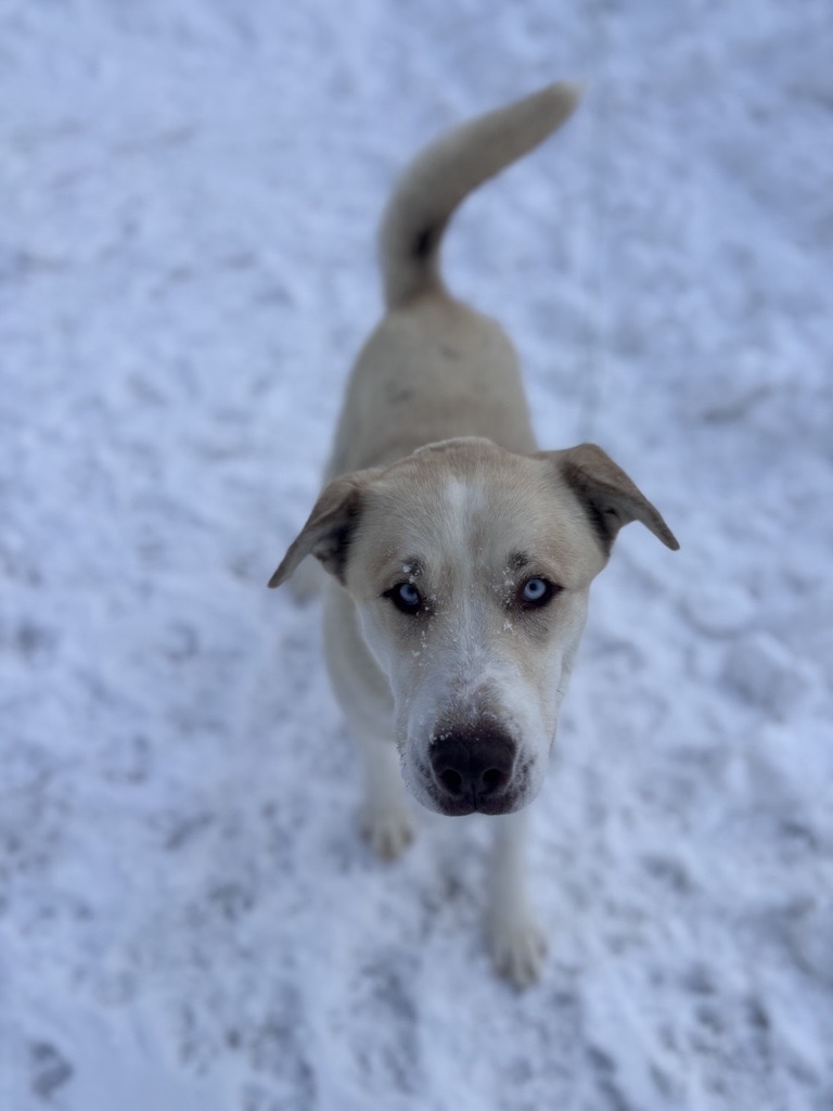 Cosmo is a handsome husky mix just over a year old, bursting with personality and ready to find a home that can keep up with his fun-loving spirit. He is an affectionate, people-focused boy who thrives on connection and loves being part of the action with his humans.