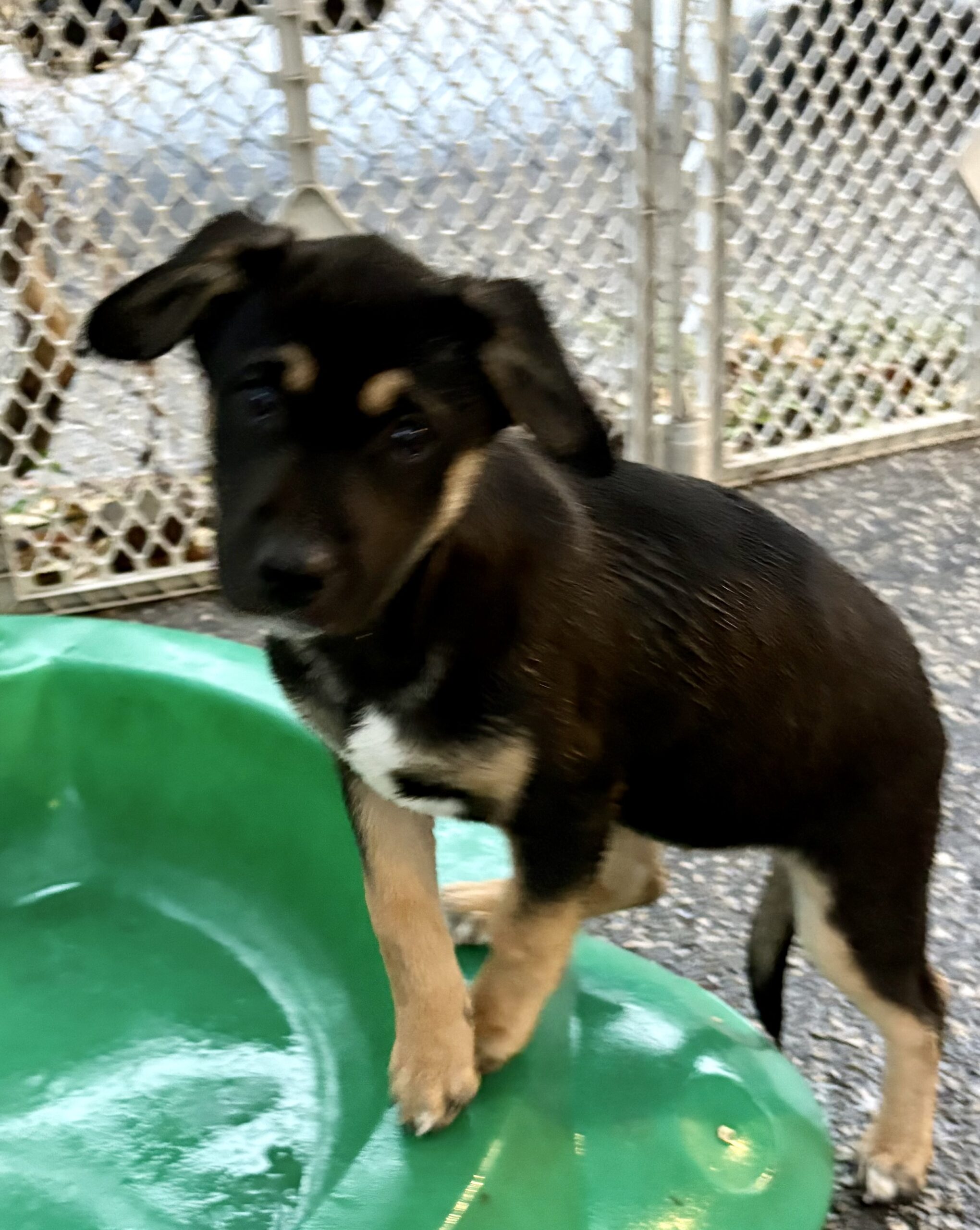 Muffin is curious and cautious in new environments, taking her time to observe before jumping into new experiences. She’s working on leash walking, nipping, grabbing clothing, and jumping up — all normal puppy things that her new family can help her master with patience and positive reinforcement.