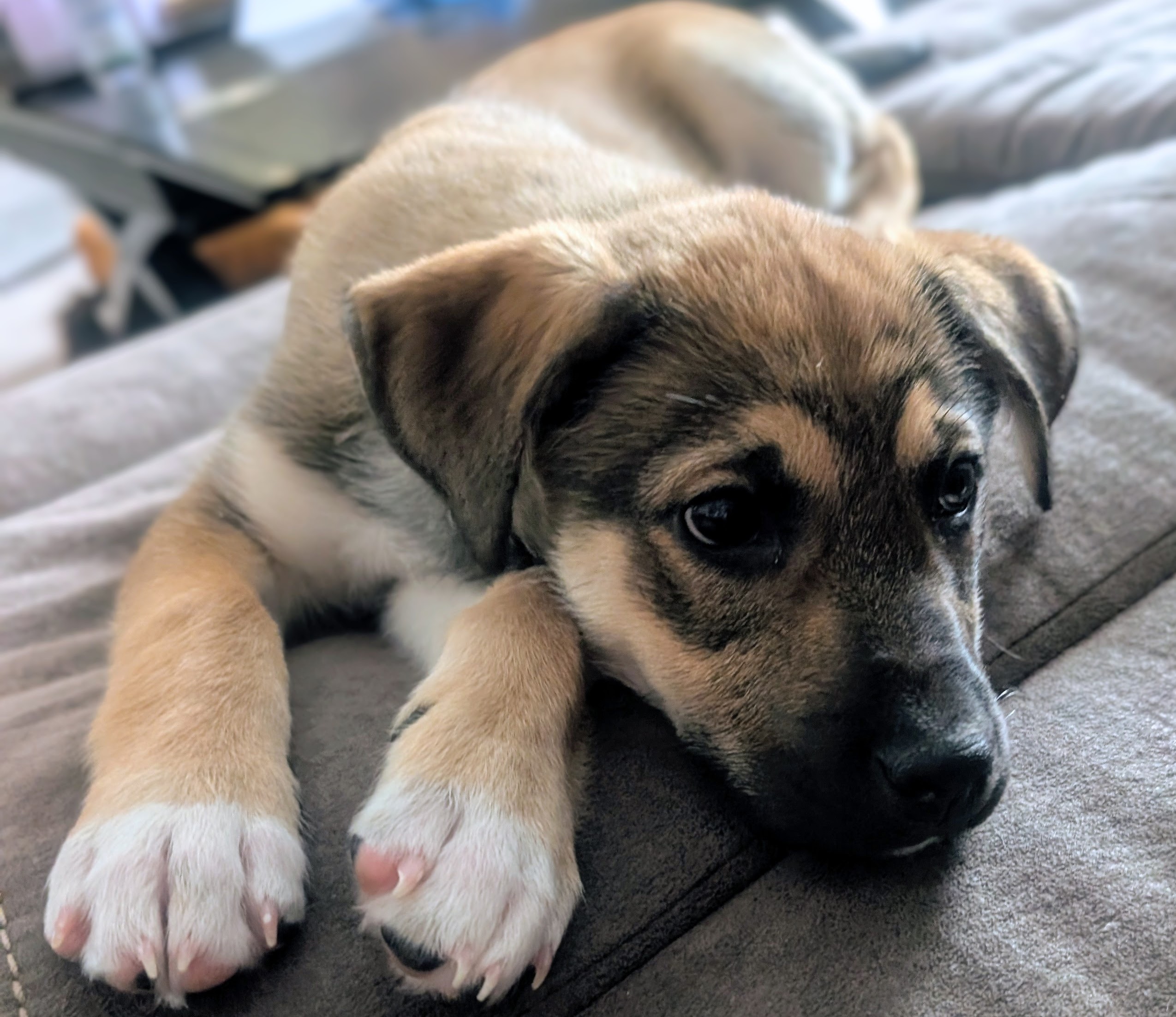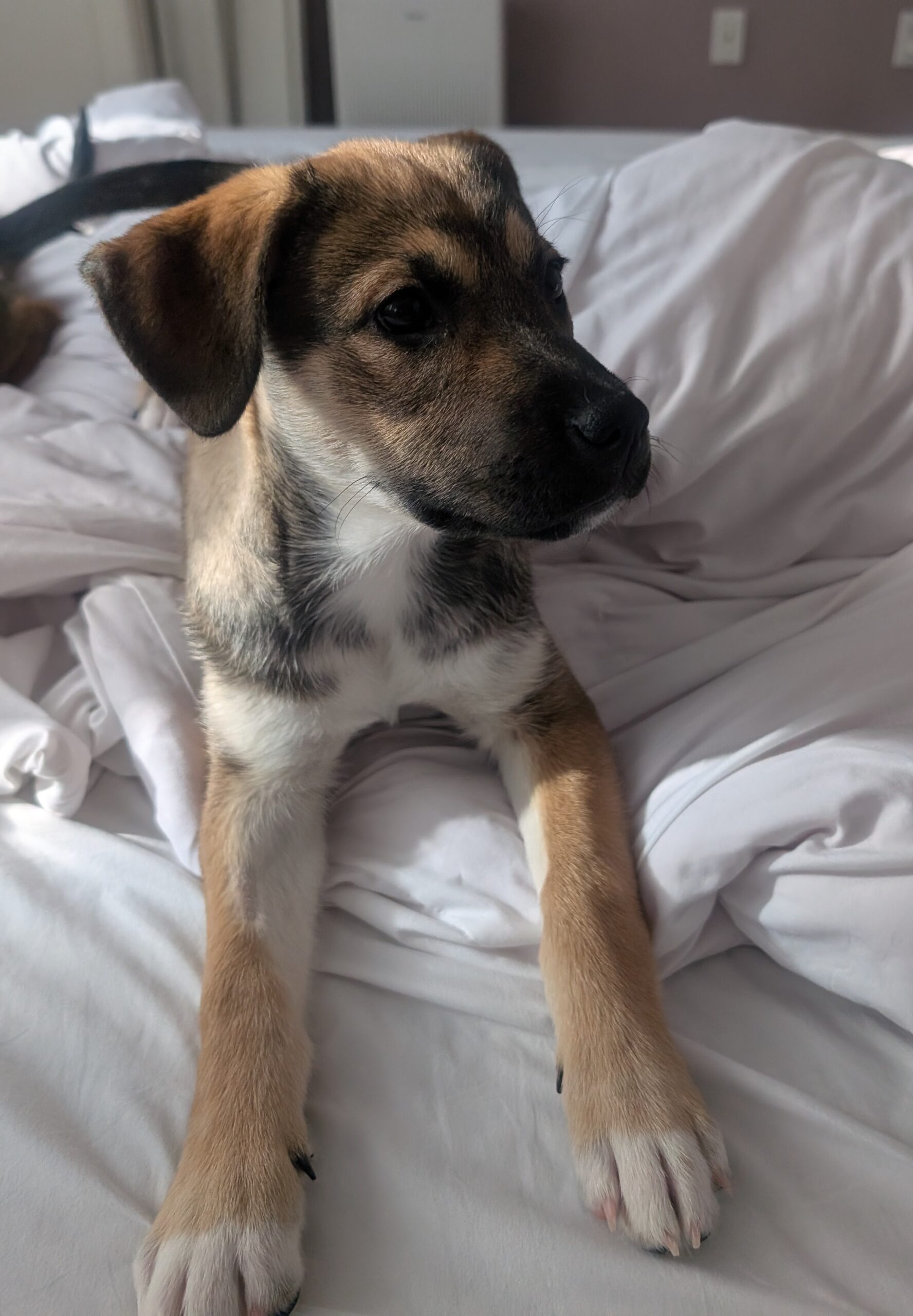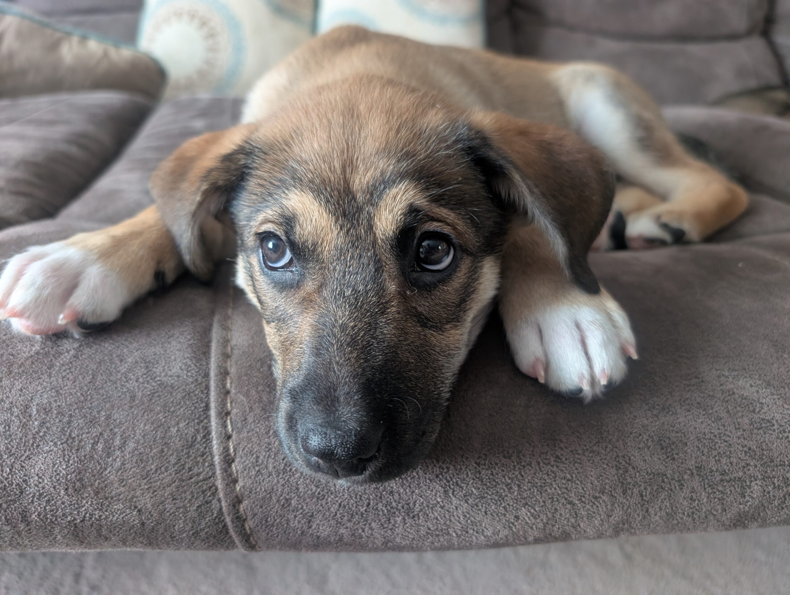 If Pancake is the cozy Sunday morning, Waffle is the extra side of fun that makes brunch unforgettable. This approximately 2-month-old male mix puppy is a bouncy, goofy little guy who’s ready to add laughter, love, and a bit of silliness to your family table.